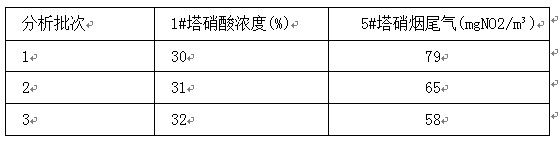 回收稀硝酸浓度30%以上时,尾气中 NOx 含量≤100mgNO2/m³时,自动控制塔液位为500mm左右,将稀硝酸输送至储液罐,硝烟尾气经过消声器直接排放。理论计算数据如下:
